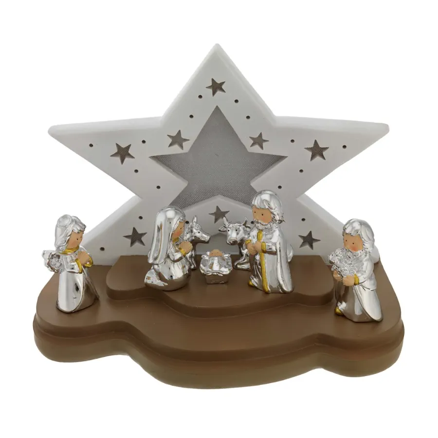 Bagutta capanna con led stella grande bianco e tortora + presepe N 8675-02
