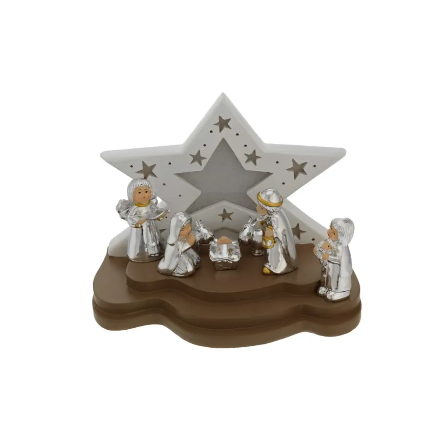 Bagutta capanna con led stella piccola bianco e tortora + presepe N 8675-03