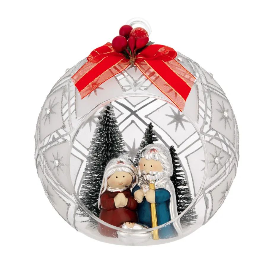 Bagutta sfera aperta deco argento d-15 con alberelli e presepe N 8627-02 AR