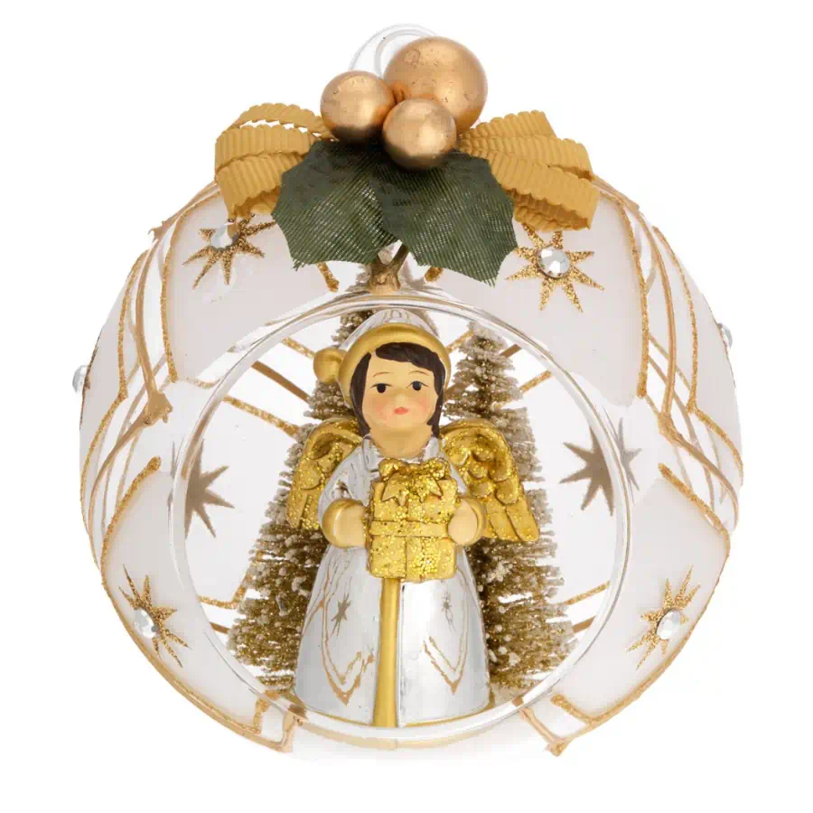 Bagutta sfera natale decorata oro con alberelli fiocco angelo N 8617 OR