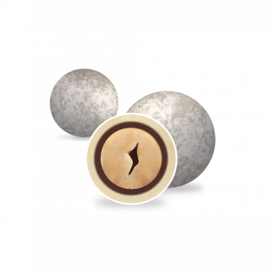 Confetti con nocciola tostata ricoperta di cioccolato bianco e fondente e da uno strato sottile di zucchero.