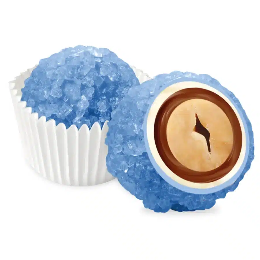 Zucchero (44%), cioccolato bianco (28%) (zucchero, latte intero in polvere, burro di cacao, emulsionante: lecitina di soia. Aroma naturale di vaniglia), cioccolato fondente (13%) (zucchero, pasta di cacao, burro di cacao, emulsionante: lecitina di soia. Aroma naturale di vaniglia), nocciole tostate (13%), amido di riso, maltodestrina, addensante: gomma arabica. Coloranti: E170, E132, E133. Agenti di rivestimento: cera carnauba (E903), cera d’api (E901).