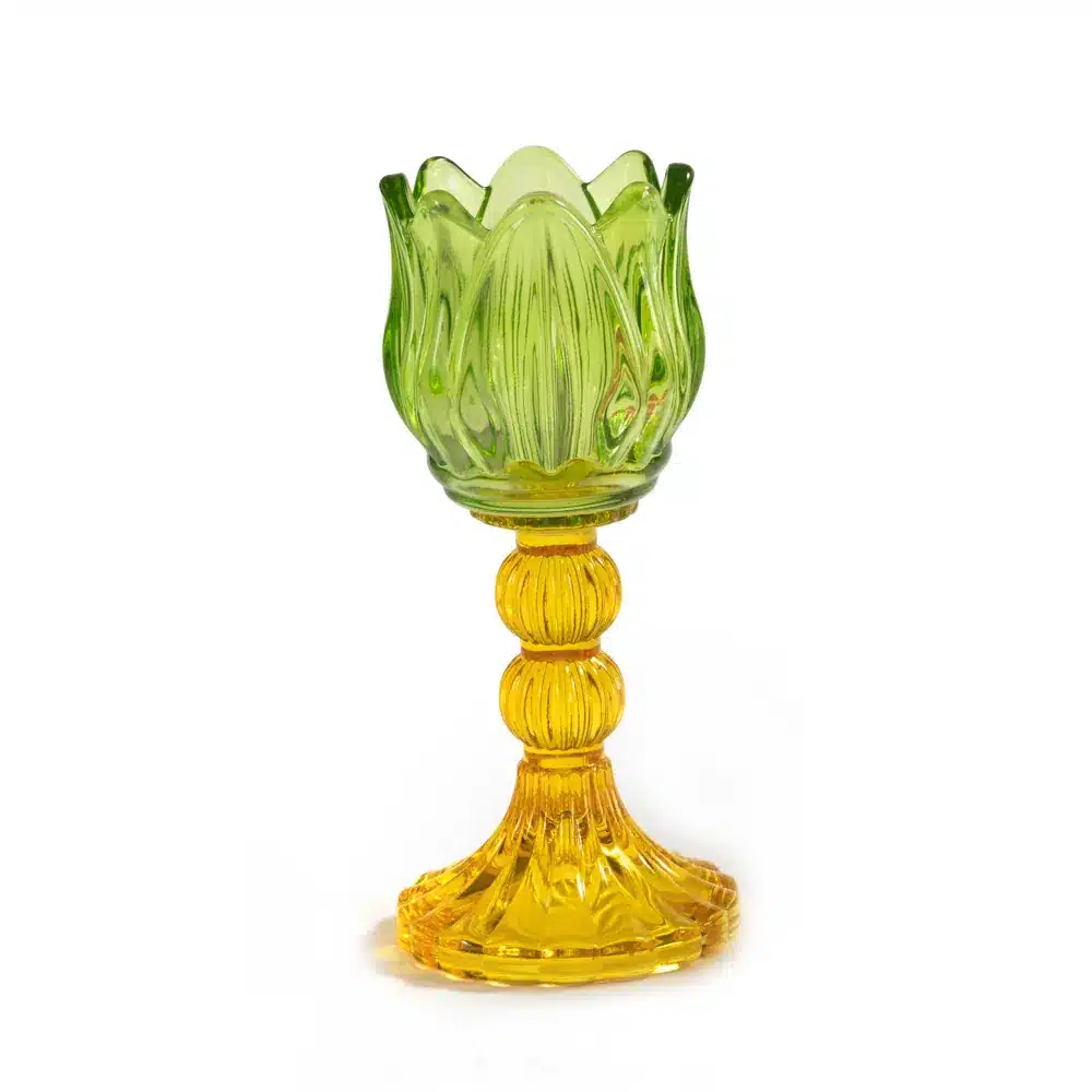 Paben portacandela tulipano 17.8 cm. vetro verde – giallo c.box PB21673
